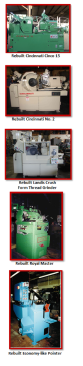 Alpa Centerless Products has been in the business of rebuilding Centerless Grinders since 1964. Cincinnati type #0, 107-4, #2 "EA", #2 "OM", Cinco 15, #3 "EA", 220-8, Landis Crush Thread Grinder, Royal Master 12x3 & 12x4, etc.